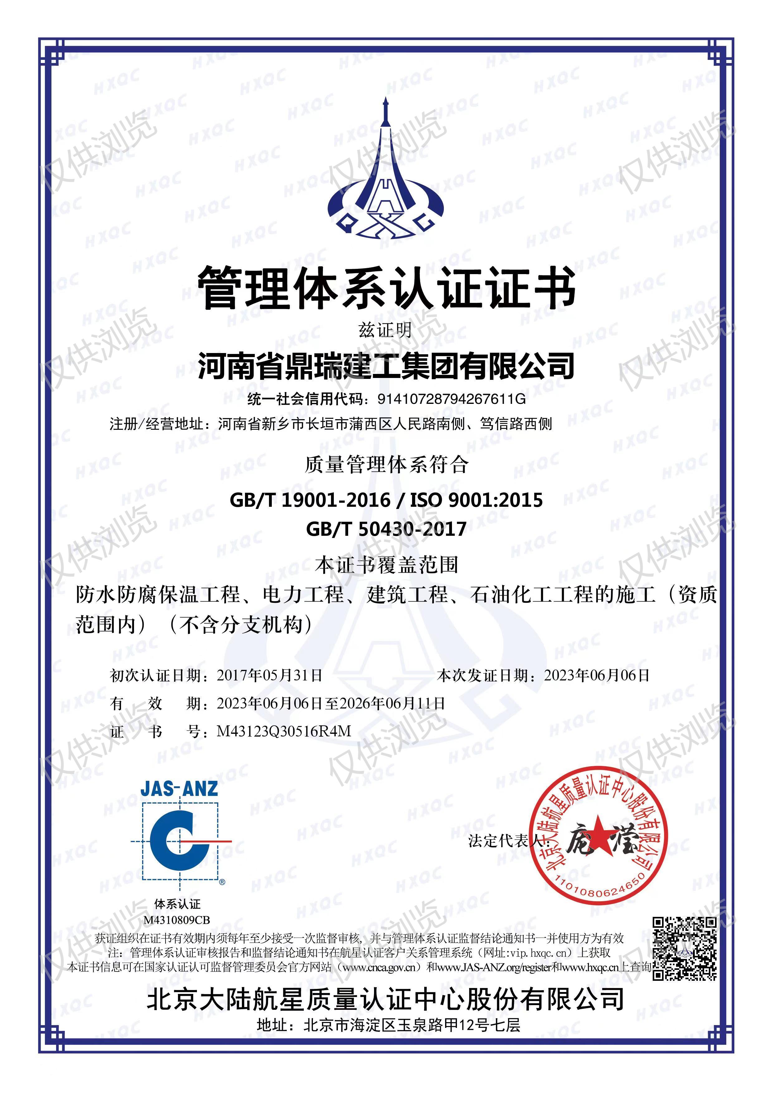 質(zhì)量管理體系認(rèn)證證書(shū)
