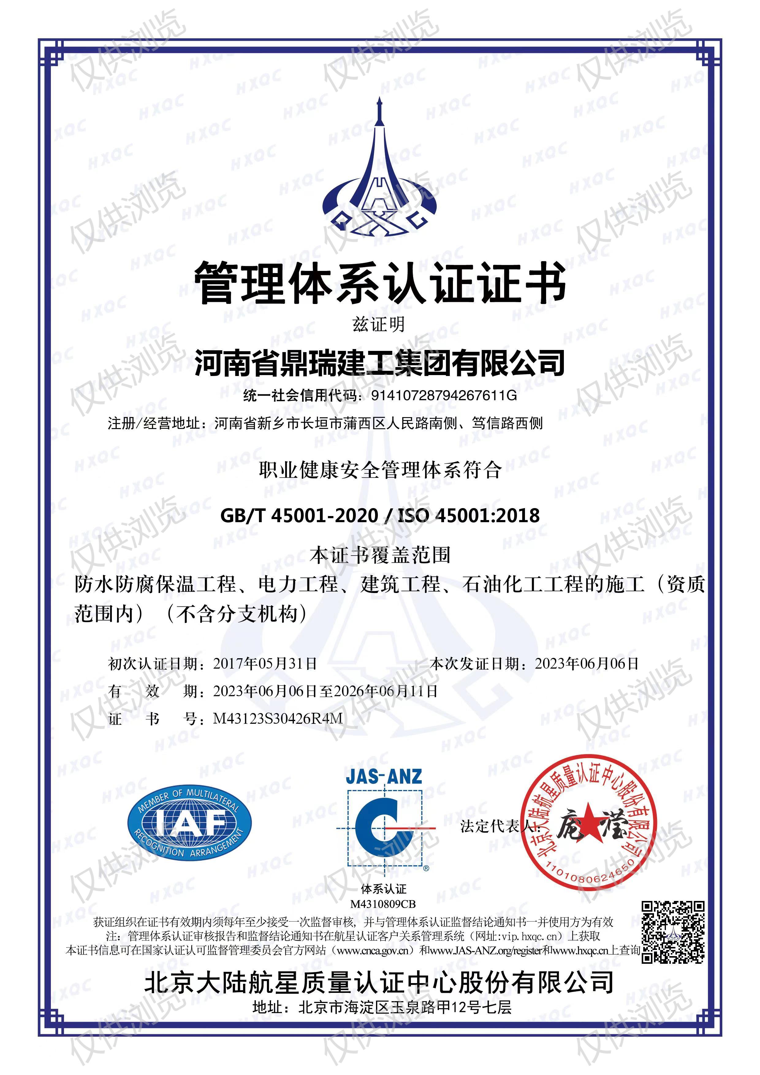 職業(yè)健康安全管理體系認(rèn)證證書(shū)